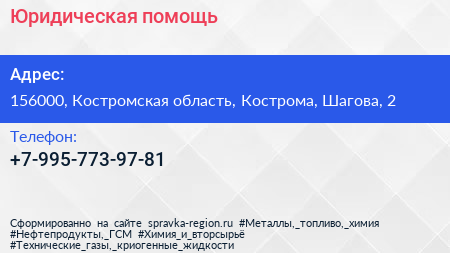 Юридическая помощь по адресу 156000, Костромская область, Кострома, Шагова, 2 в дальнейшем Организация, размещена в следующих категориях: