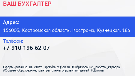 ВАШ БУХГАЛТЕР по адресу 156005, Костромская область, Кострома, Кузнецкая, 18а в дальнейшем Организация, размещена в следующих категориях: