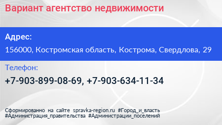 Вариант, агентство недвижимости по адресу 156000, Костромская область, Кострома, Свердлова, 29 в дальнейшем Организация, размещена в следующих категориях: