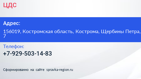 ЦДС по адресу 156019, Костромская область, Кострома, Щербины Петра, 7 в дальнейшем Организация, размещена в следующих категориях: