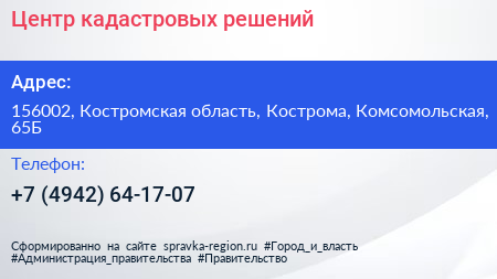 Центр кадастровых решений по адресу 156002, Костромская область, Кострома, Комсомольская, 65Б в дальнейшем Организация, размещена в следующих категориях: