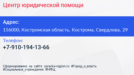 Центр юридической помощи по адресу 156000, Костромская область, Кострома, Свердлова, 29 в дальнейшем Организация, размещена в следующих категориях: