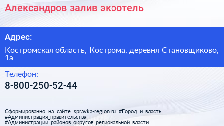 Александров залив, экоотель по адресу Костромская область, Кострома, деревня Становщиково, 1а в дальнейшем Организация, размещена в следующих категориях: