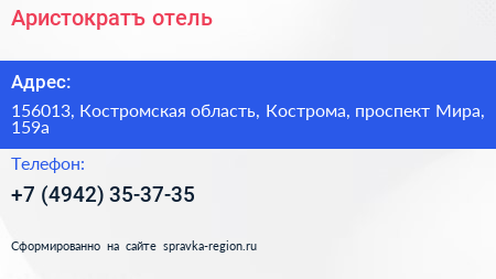 Аристократъ, отель по адресу 156013, Костромская область, Кострома, проспект Мира, 159а в дальнейшем Организация, размещена в следующих категориях: