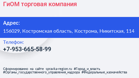 ГиОМ, торговая компания по адресу 156029, Костромская область, Кострома, Никитская, 114 в дальнейшем Организация, размещена в следующих категориях: