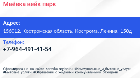 Маёвка, вейк-парк по адресу 156012, Костромская область, Кострома, Ленина, 150д в дальнейшем Организация, размещена в следующих категориях:
