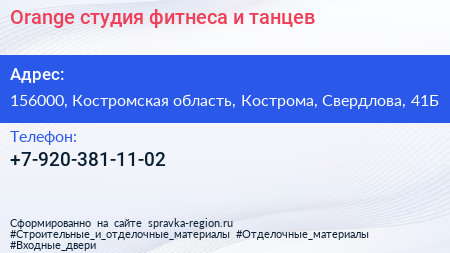 Orange, студия фитнеса и танцев по адресу 156000, Костромская область, Кострома, Свердлова, 41Б в дальнейшем Организация, размещена в следующих категориях: