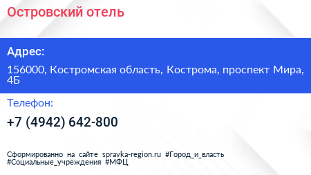 Островский, отель по адресу 156000, Костромская область, Кострома, проспект Мира, 4Б в дальнейшем Организация, размещена в следующих категориях: