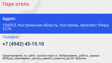 Парк-отель по адресу 156013, Костромская область, Кострома, проспект Мира, 157я в дальнейшем Организация, размещена в следующих категориях: