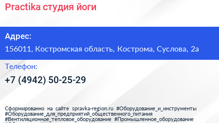 Practika, студия йоги по адресу 156011, Костромская область, Кострома, Суслова, 2а в дальнейшем Организация, размещена в следующих категориях: