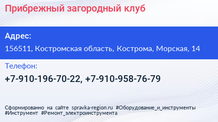 Прибрежный, загородный клуб по адресу 156511, Костромская область, Кострома, Морская, 14 в дальнейшем Организация, размещена в следующих категориях: