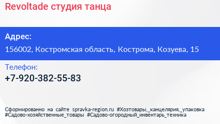 Revoltade, студия танца по адресу 156002, Костромская область, Кострома, Козуева, 15 в дальнейшем Организация, размещена в следующих категориях:
