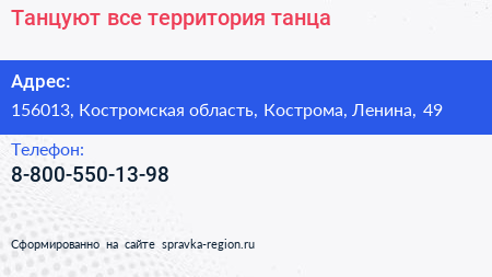 Танцуют все, территория танца по адресу 156013, Костромская область, Кострома, Ленина, 49 в дальнейшем Организация, размещена в следующих категориях: