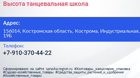 Высота, танцевальная школа по адресу 156014, Костромская область, Кострома, Индустриальная, 19Б в дальнейшем Организация, размещена в следующих категориях: