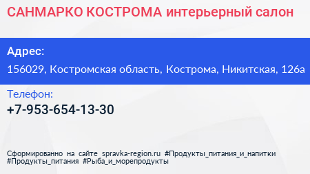 САНМАРКО-КОСТРОМА, интерьерный салон по адресу 156029, Костромская область, Кострома, Никитская, 126а в дальнейшем Организация, размещена в следующих категориях: