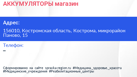 АККУМУЛЯТОРЫ, магазин по адресу 156010, Костромская область, Кострома, микрорайон Паново, 15 в дальнейшем Организация, размещена в следующих категориях: