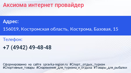 Аксиома, интернет-провайдер по адресу 156019, Костромская область, Кострома, Базовая, 15 в дальнейшем Организация, размещена в следующих категориях: