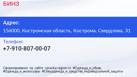 БИНЗ по адресу 156000, Костромская область, Кострома, Свердлова, 31 в дальнейшем Организация, размещена в следующих категориях: