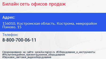Билайн, сеть офисов продаж по адресу 156010, Костромская область, Кострома, микрорайон Паново, 15 в дальнейшем Организация, размещена в следующих категориях: