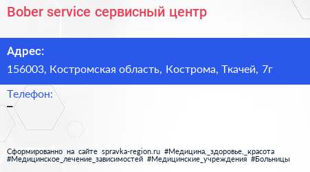 Bober service, сервисный центр по адресу 156003, Костромская область, Кострома, Ткачей, 7г в дальнейшем Организация, размещена в следующих категориях: