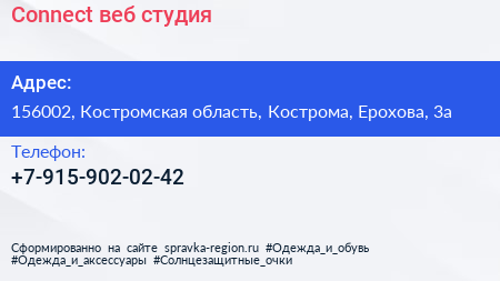Conneсt, веб-студия по адресу 156002, Костромская область, Кострома, Ерохова, 3а в дальнейшем Организация, размещена в следующих категориях: