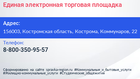 Единая электронная торговая площадка по адресу 156003, Костромская область, Кострома, Коммунаров, 22 в дальнейшем Организация, размещена в следующих категориях: