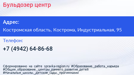 Бульдозер-центр по адресу Костромская область, Кострома, Индустриальная, 95 в дальнейшем Организация, размещена в следующих категориях: