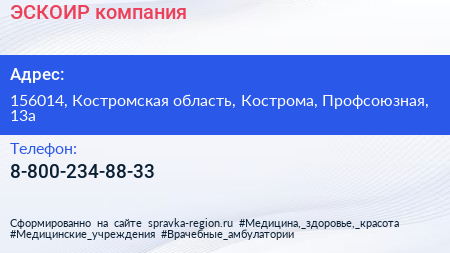 ЭСКОИР, компания по адресу 156014, Костромская область, Кострома, Профсоюзная, 13а в дальнейшем Организация, размещена в следующих категориях: