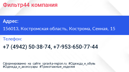 Фильтр44, компания по адресу 156013, Костромская область, Кострома, Сенная, 15 в дальнейшем Организация, размещена в следующих категориях:
