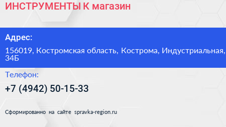 ИНСТРУМЕНТЫ-К, магазин по адресу 156019, Костромская область, Кострома, Индустриальная, 34Б в дальнейшем Организация, размещена в следующих категориях: