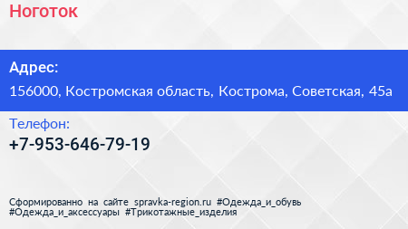 Ноготок по адресу 156000, Костромская область, Кострома, Советская, 45а в дальнейшем Организация, размещена в следующих категориях: