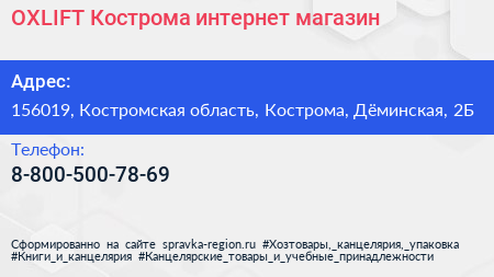 OXLIFT-Кострома, интернет-магазин по адресу 156019, Костромская область, Кострома, Дёминская, 2Б в дальнейшем Организация, размещена в следующих категориях: