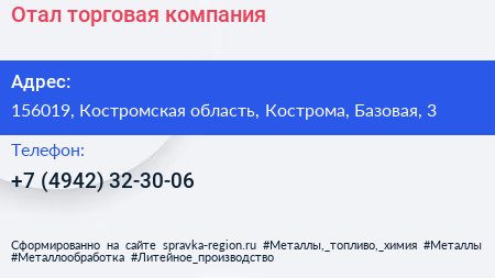 Отал, торговая компания по адресу 156019, Костромская область, Кострома, Базовая, 3 в дальнейшем Организация, размещена в следующих категориях: