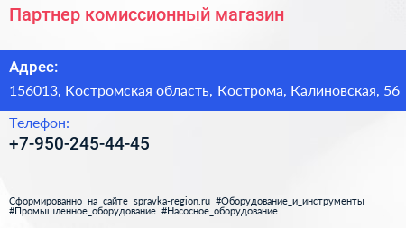 Партнер, комиссионный магазин по адресу 156013, Костромская область, Кострома, Калиновская, 56 в дальнейшем Организация, размещена в следующих категориях: