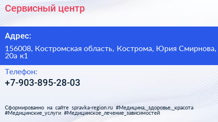 Сервисный центр по адресу 156008, Костромская область, Кострома, Юрия Смирнова, 20а к1 в дальнейшем Организация, размещена в следующих категориях: