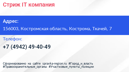Стриж, IT-компания по адресу 156003, Костромская область, Кострома, Ткачей, 7 в дальнейшем Организация, размещена в следующих категориях: