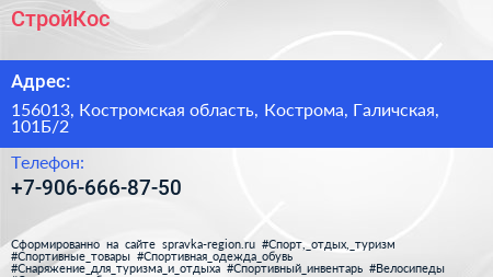 СтройКос по адресу 156013, Костромская область, Кострома, Галичская, 101Б/2 в дальнейшем Организация, размещена в следующих категориях: