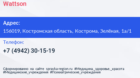 Wattson по адресу 156019, Костромская область, Кострома, Зелёная, 1а/1 в дальнейшем Организация, размещена в следующих категориях: