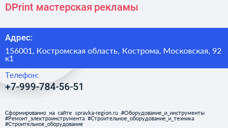 DPrint, мастерская рекламы по адресу 156001, Костромская область, Кострома, Московская, 92 к1 в дальнейшем Организация, размещена в следующих категориях: