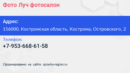 Фото Луч, фотосалон по адресу 156000, Костромская область, Кострома, Островского, 2 в дальнейшем Организация, размещена в следующих категориях: