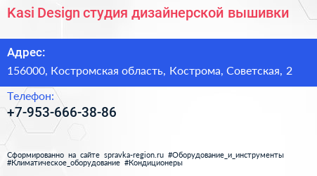 Kasi Design, студия дизайнерской вышивки по адресу 156000, Костромская область, Кострома, Советская, 2 в дальнейшем Организация, размещена в следующих категориях: