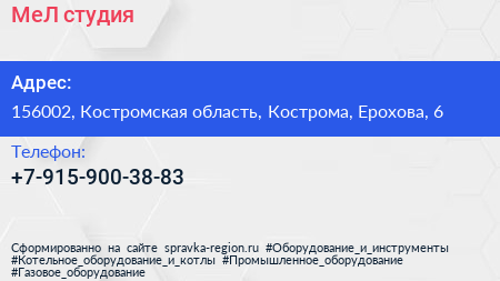 МеЛ, студия по адресу 156002, Костромская область, Кострома, Ерохова, 6 в дальнейшем Организация, размещена в следующих категориях:
