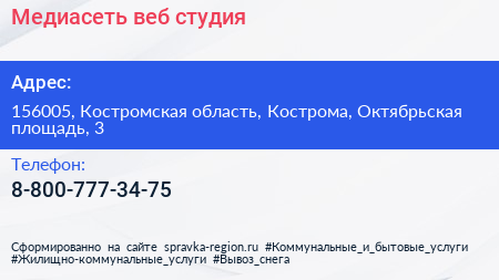 Медиасеть, веб-студия по адресу 156005, Костромская область, Кострома, Октябрьская площадь, 3 в дальнейшем Организация, размещена в следующих категориях: