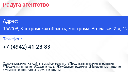 Радуга, агентство по адресу 156009, Костромская область, Кострома, Волжская 2-я, 12а в дальнейшем Организация, размещена в следующих категориях:
