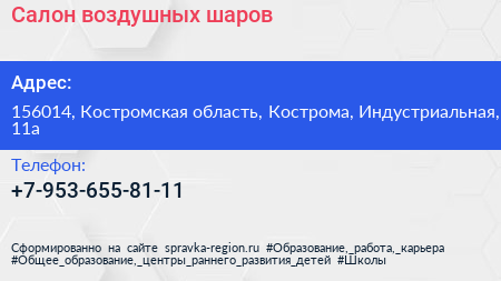 Салон воздушных шаров по адресу 156014, Костромская область, Кострома, Индустриальная, 11а в дальнейшем Организация, размещена в следующих категориях: