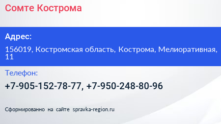 Сомте-Кострома по адресу 156019, Костромская область, Кострома, Мелиоративная, 11 в дальнейшем Организация, размещена в следующих категориях: