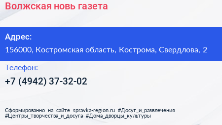 Волжская новь, газета по адресу 156000, Костромская область, Кострома, Свердлова, 2 в дальнейшем Организация, размещена в следующих категориях: