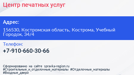 Центр печатных услуг по адресу 156530, Костромская область, Кострома, Учебный Городок, 34/4 в дальнейшем Организация, размещена в следующих категориях: