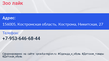 Зоо-лайк по адресу 156005, Костромская область, Кострома, Никитская, 27 в дальнейшем Организация, размещена в следующих категориях: