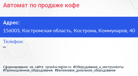 Автомат по продаже кофе по адресу 156003, Костромская область, Кострома, Коммунаров, 40 в дальнейшем Организация, размещена в следующих категориях: